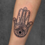 The client’s vision for this tattoo was rooted in tradition and faith: to create a powerful, enduring symbol of protection against negative energy and the evil eye (Nazar). The Hamsa Hand is one of the most universally recognized talismans for good fortune and blessings. The design needed to be executed in a bold, solid Blackwork style to maximize its iconic strength and visual impact.