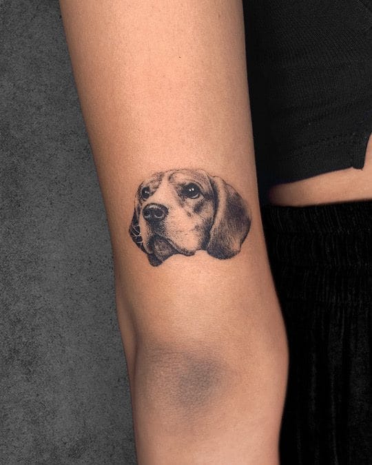 This tattoo was commissioned as the ultimate tribute to a beloved family member. The client’s vision was to create a permanent, lifelike portrait of their dog, capturing its gentle expression and soul, but executed on a small, subtle scale. The goal was to ensure the image was instantly recognizable and full of life, preserving the memory and the unbreakable bond between human and animal forever.